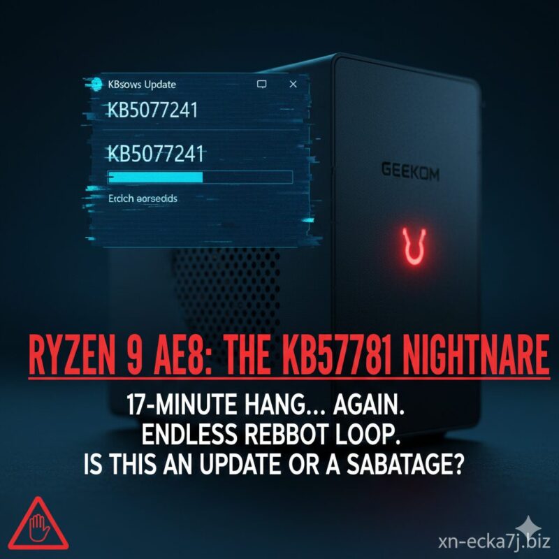 Ryzen 9 8945HS搭載のGEEKOM AE8で、最新のWindows 11 25H2向け更新プログラム「KB5077241 (Build 26200.7922)」を適用。シャットダウン時の「4分」という表示を裏切る17分間のハングアップと、その後の強制終了、2回にわたるBIOSループの惨状を実録レポートします。MSのRyzen最適化不足が招いた、実機ユーザーの怒りの検証記録です。